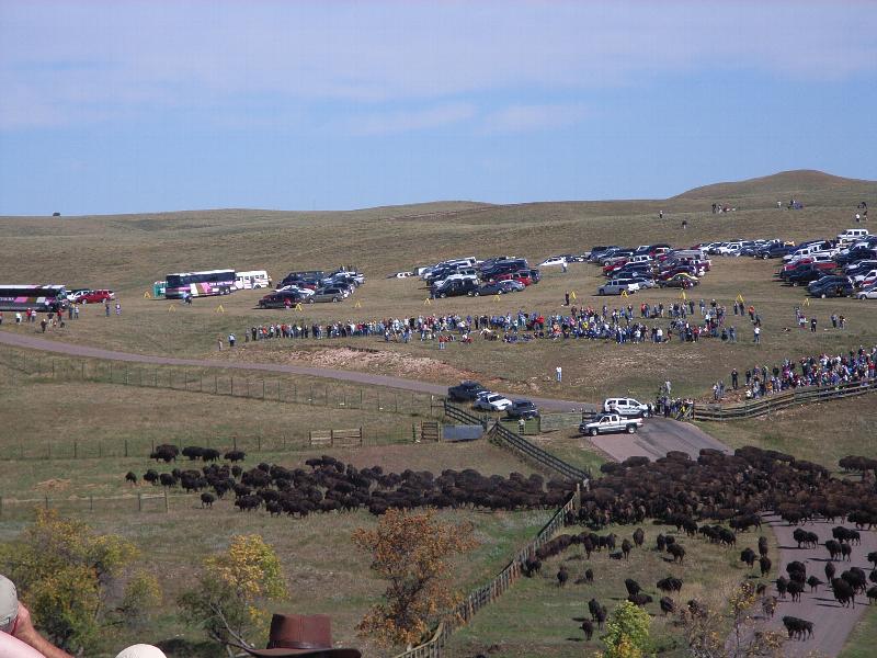 Ich habe meine Gastmutter Kari zu einem kurzfristigen Besuch des, im Custer State Park in den wunderschönen Black Hills stattfindenden, Buffalo Roundup hinreißen können. Kurz nach 5 Uhr sind wir losgefahren. Obwohl die Strecke in einer Stunde zu fahren ist waren wir erst gegen 8 Uhr am Ziel. Das lag wahrscheinlich daran, dass die anderen 14000 Besucher die gleiche Straße wie wir benutzt haben...