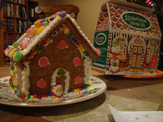 Samstag war ein voller Tag für mich. Ich hatte keine gute Laune und bin deswegen -um mich abzulenken- mit Kari einkaufen gegangen. Ich habe mir unter anderem Gummistiefel und einen dringend benötigten Lockenstab gekauft. Das hat mich dann etwas fröhlicher gemacht. Als wir wieder zu Hause waren habe ich Kari´s Haare gefärbt (nur etwas heller) und während ihre Haarfarbe einziehen musste hat sie mir Locken gemacht (mit meinem neuen Lockenstab). Dann waren wir in einem großen Bastelladen, weil ich etwas für ein Französischprojekt einkaufen musste. Gegen um 6 waren wir bei einer Schmuckparty (wie Tubberware etc.). Es waren sehr schöne Sachen dabei, aber nicht ganz mein Stil, weshalb ich mich dann letztendlich dagegen entschieden habe etwas zu kaufen. Nachdem wir gegen um 8 Kilian ins Bett gebracht hatten haben wir angefangen ein Lebkuchenhäuschen zusammenzubauen.